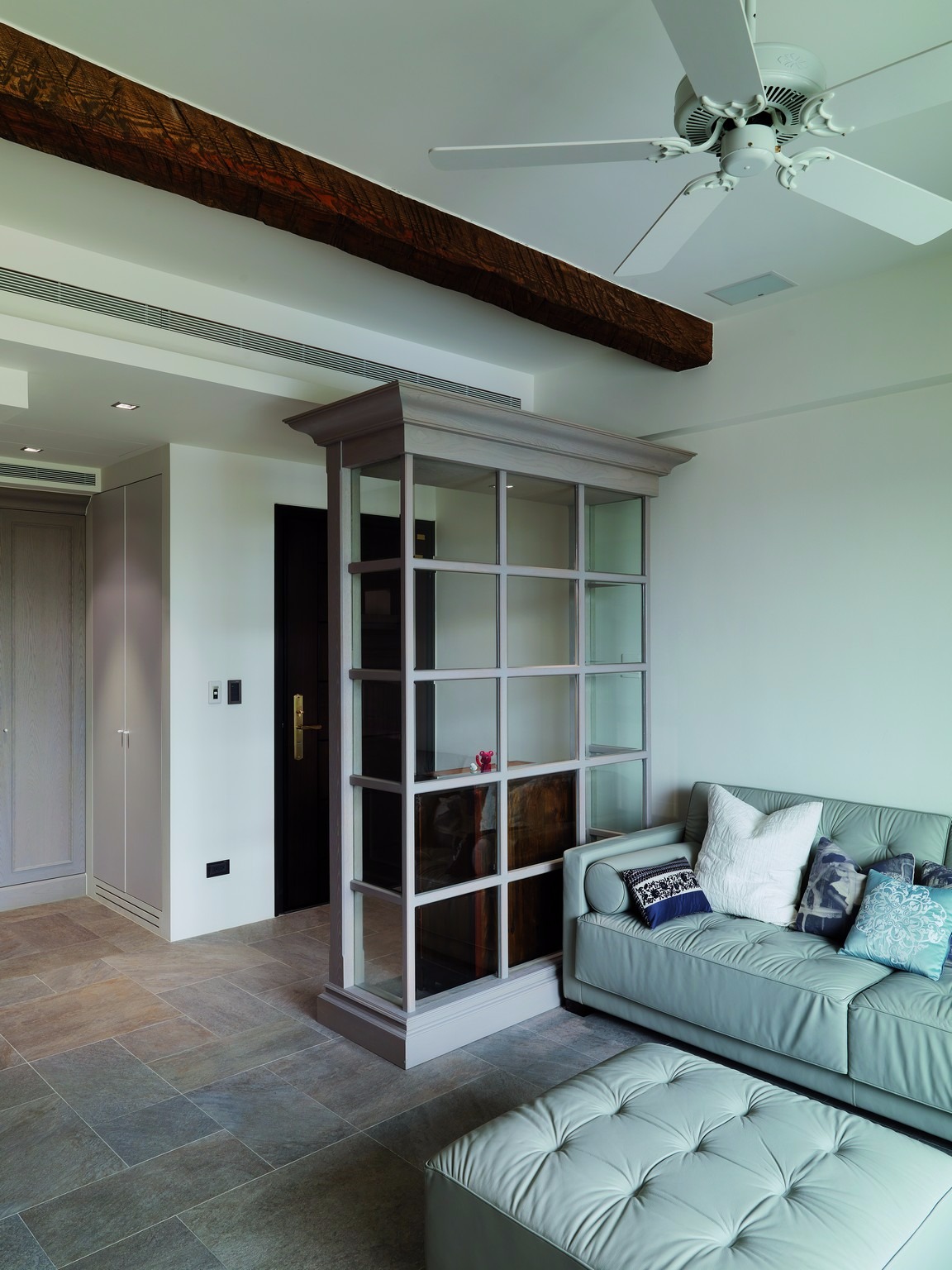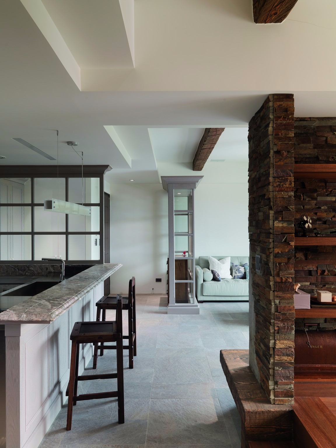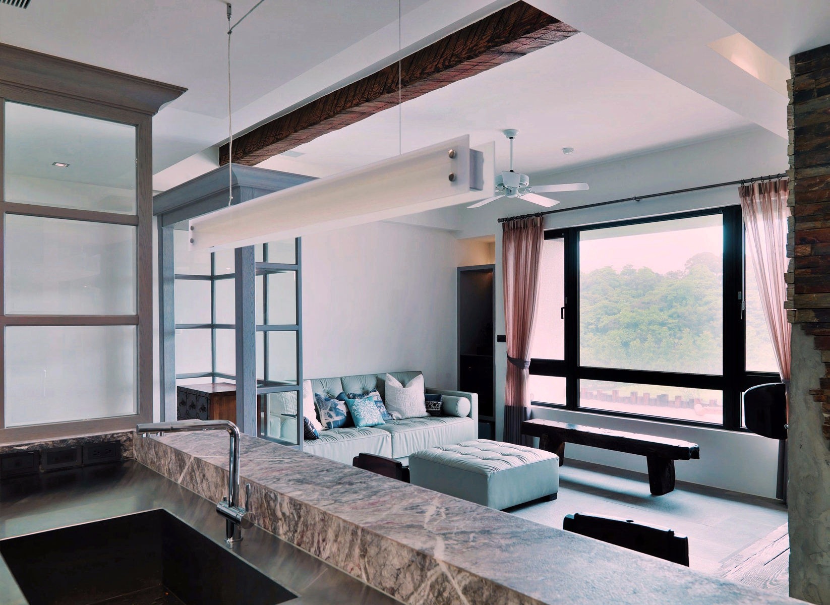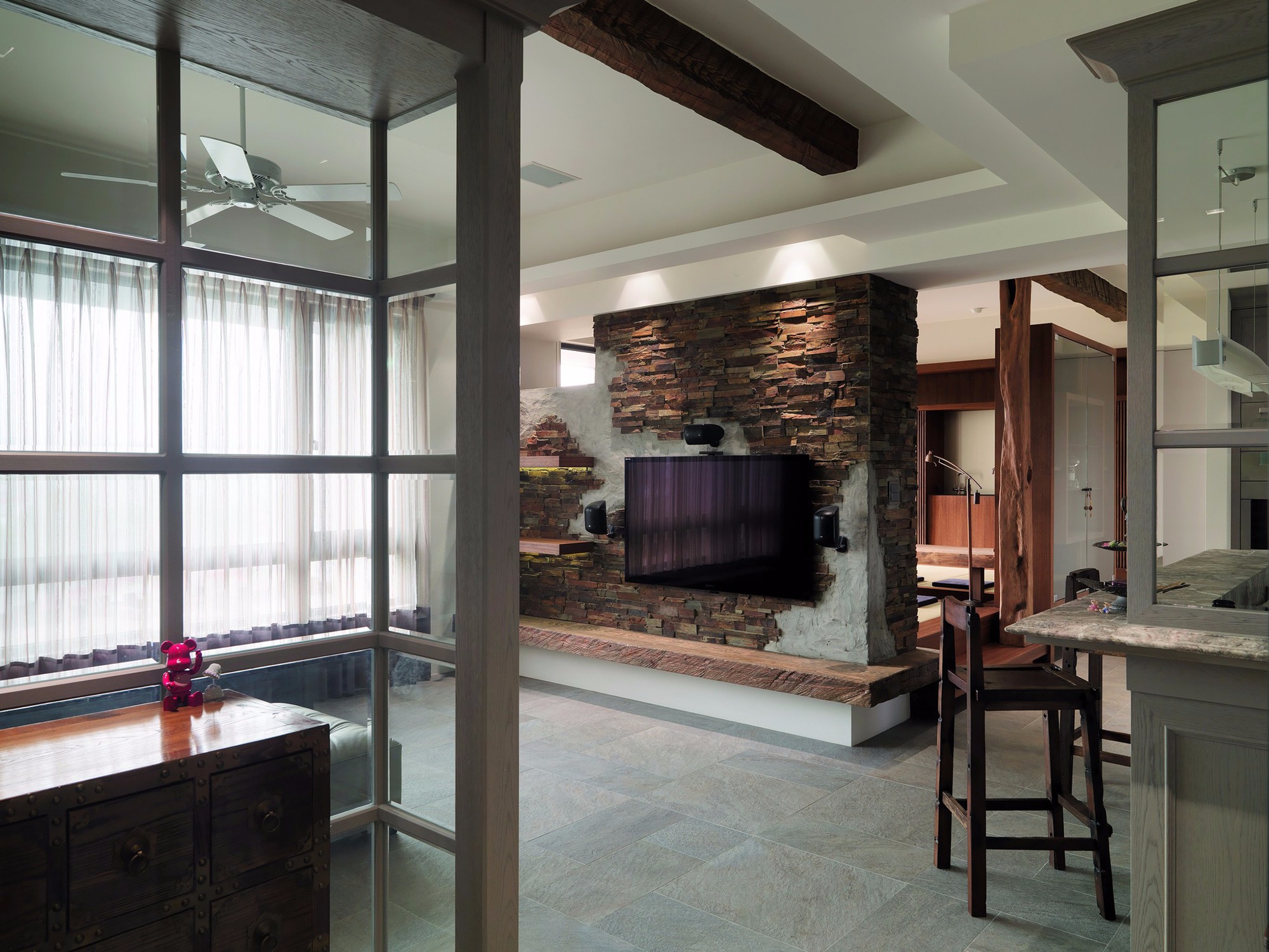 單身女主人深受畫家父親的影響,從小就培養了非常好的藝術涵養,本案在整體規劃及執行製作上皆以客戶的生活習性、個人喜好及保留多數原有家具來打造此空間,歲月感的TV牆,貫穿天花的木樑用鍊條鋸切割出斑駁感,客浴的牆面以不規則石片堆砌而成.........最終女主人藉由我們的手完成了她心中的"家"。